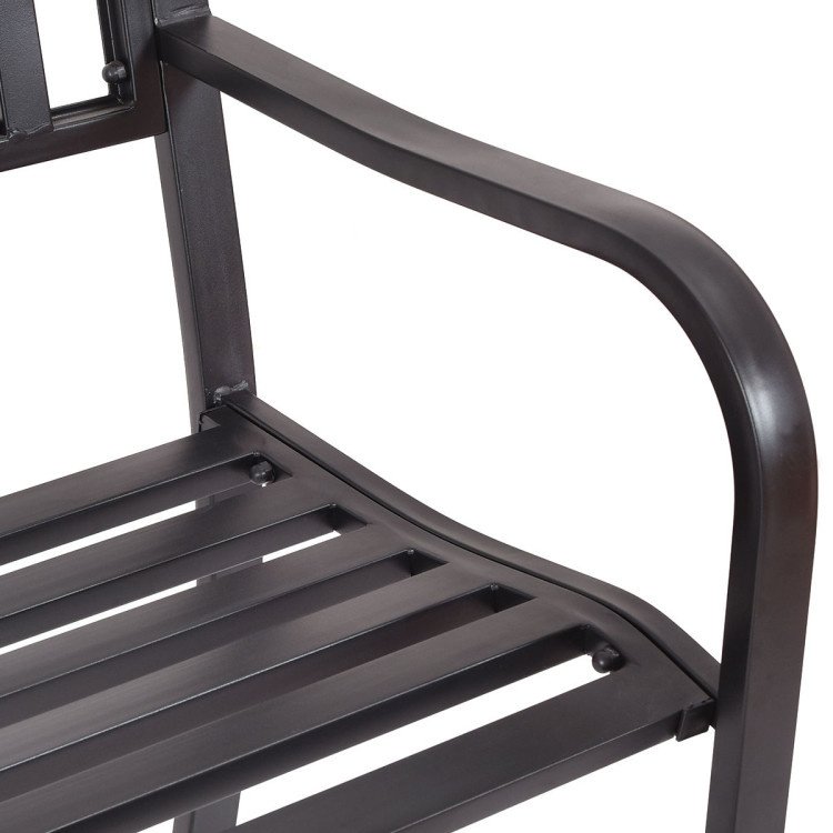 ● Easy to Maintain Clean: With immerse painting and smooth surface, it is easy for you to clean the garden bench. Six steel slats seat is perfect for outdoor use because gap between each slat is good for draining on rainy day.
