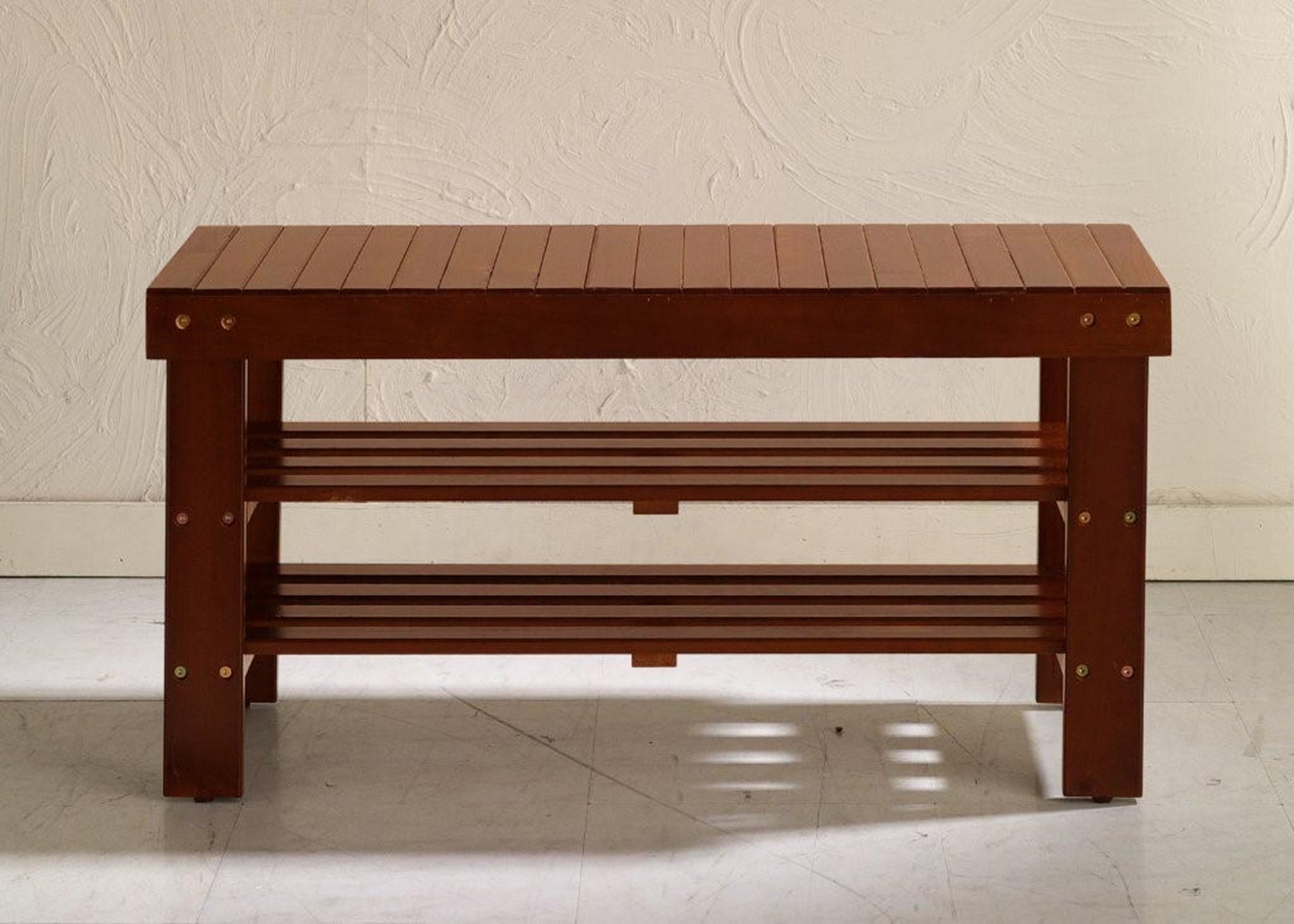 Pina Quality Solid Wood Shoe Bench, Cherry Finish