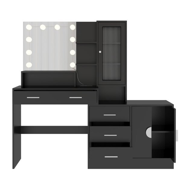Elevate your bedroom with this stylish vanity and dresser combo that blends functionality with elegance. Designed to save space while providing ample room for your beauty essentials, this modern vanity offers the perfect place to get ready in style. With a sleek design, built-in mirror, and adjustable lighting, it meets all your needs for creating flawless looks, whether you're prepping for the day or getting ready for a night out. With a built-in charging station, you can conveniently charge your devices or power up your beauty tools right at your vanity.