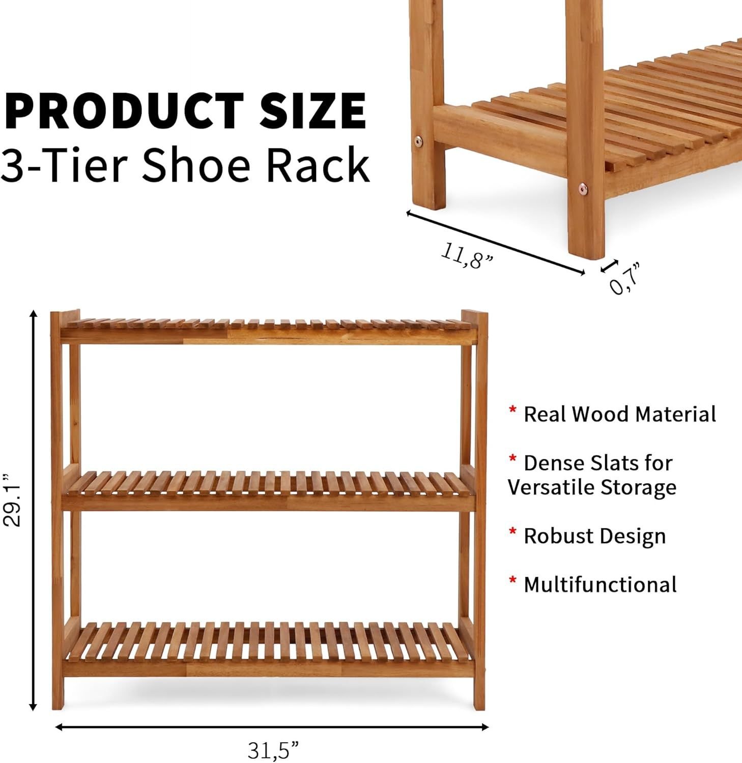[BETTER THAN UNUSUAL MATERIAL]The shoe rack is made of beautiful Acacia wood. It combines hardness with a beautiful natural wood grain. It can be used intact for many years without damage. He will be a beautiful scenery in your home entrance.