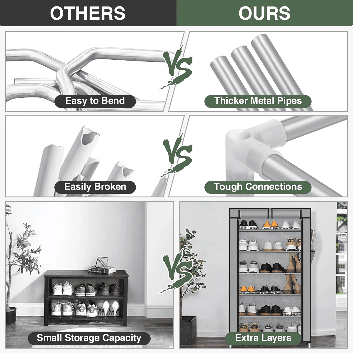 MULTIFUNCTIONAL SHOE RACK: The non-woven multi-layer shoe rack is made of spun cloth, PP material and 9.88mm thickened steel pipe, which is healthy, sturdy and durable, with beautiful design. The shoe rack is longer, stronger and more stable;